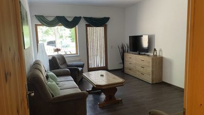 Auf 100 m2 können Sie mit bis zu 4 Personen die Ruhe und Natur genießen. Das Wohnzimmer ist zur Südseite ausgerichtet und bietet mit der geräumigen Ledercouch einen gemütlichen Platz zum Erholen. Direkt an das Wohnzimmer grenzt die große Terrasse an, auf welcher Sie in Ruhe bei schönem Wetter die Sonne genießen können. Auf dieser befindet sich sowohl ein Grill als auch ein Sonnenschirm.